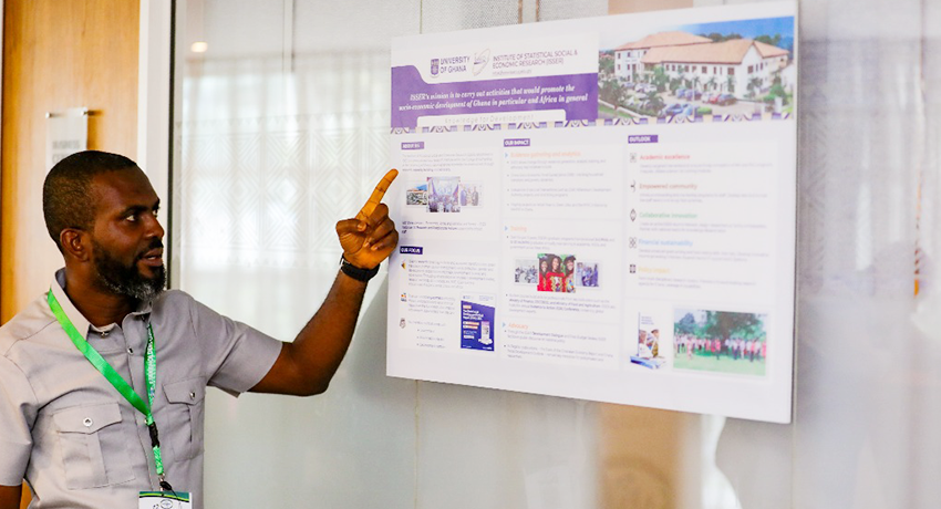 Another notable highlight was ISSER’s innovative climate adaptation project, “Localization of National Adaptation Plans (NAPs) and Nationally Determined Contributions (NDCs) in Ghana: The Case of Wa West and Ellembelle Districts,” featured as part of the Africa Agriculture Adaptation Atlas initiative. The project explores how Ghana’s national climate commitments can be translated into district-level action by using spatial data and policy tools to identify local vulnerabilities and prioritise investments. ISSER’s contribution supports the broader Atlas’s aim of making climate information more accessible and actionable for decision-makers across Africa.
